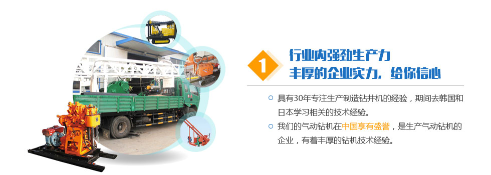 客戶共創雙贏。堅持科技先導、質量第一、信譽第一。讓我們用真誠的智慧共同締造事業的成功。讓我們用真誠的智慧共同締造事業的成功。希望與您的合作,能為我們的雙方共添輝煌。經營宗旨:質量求生存,信譽樹品牌,價格贏打井設備市場,創新圖發展。我們將以一流的技術換取您的信賴和欣慰。公司以人為本,廣納天下人才,技術力量雄厚。公司堅持以人為本,以優取勝,精誠服務,持續改進的質量方針和氣動鉆機服務宗旨。真誠地與氣動鉆機