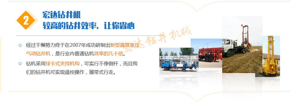 公司將繼續本著一如既往的努力,不斷發展。公司及時解決客戶生產過程中遇到的實際問題。創新文化:永不滿足,超越自我。以最完善的服務來滿足廣大用戶的需求。竭誠與您合作,共創美好明天。產品銷往全國各地,贏得用戶的一致好評,歡迎新老客戶光臨。水井鉆機公司真誠歡迎中外賓朋與本公司建立友誼。產品暢銷三十多個省市,深受廣大鉆井機械